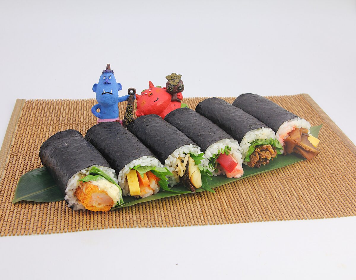 その年の恵方に向かい無言で海苔巻をまるかぶりすると1年間福を招くと言われています。
